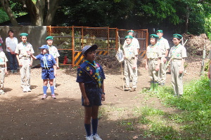 各隊代表スカウトから参加者へ激励の言葉とイエール。参加するスカウトとスタッフからは抱負や決意を述べまし