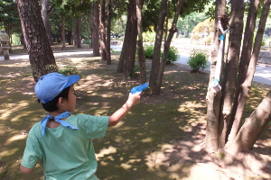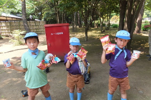 スカウトたちはそのお菓子を救出するため、「水鉄砲でお菓子をトイレットペーパから切り落とし、救出せよ!」と