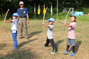い」と言っていたスカウトも次から次へと掴むことが出来ました。その後、プール遊びと弓矢対決をし、夕食後は恒