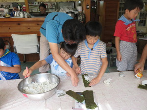 にぎり作り(今度は80個)。夕食会後は花火をしました。