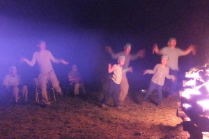 ダーとスイカ割り&種飛ばし対決をしました。夕食後は大営火(キャンプファイヤー)を行い、ビーバー隊は「よう
