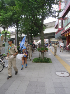 今年もスカウト19名(体験者含む)、指導者5名、保護者10名が本部(總持寺境内)からJR鶴見駅を抜け、