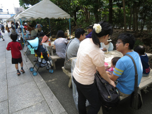 焼きそば・焼き鳥・じゃがバター・豚汁・フランクフルト・カキ氷・綿菓子・ポップコーン等の飲食コーナー。