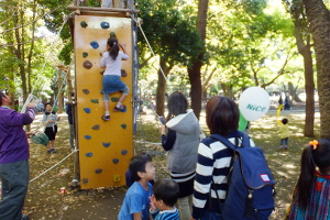 ザー(当団関係者の持寄品)の販売コーナー。スカウトが考えたゲーム(スマートボール)コーナー。クライミン