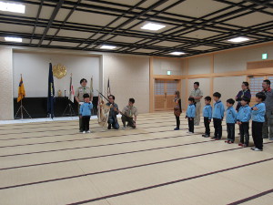 隊長と一緒に「やくそく」と「きまり」を言いました。