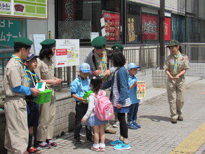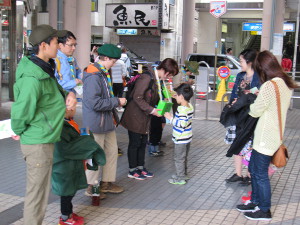 当団は毎年,4月29日に緑の募金活動をしていますが、今年は4月14日に起きた熊本地震により、多くの方々が