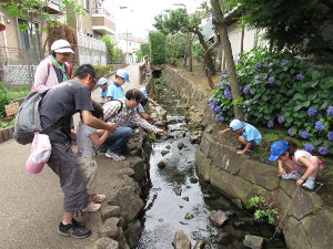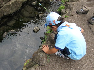 鶴見区寺尾のせせらぎ遊歩道の小川に行き、ザリガニ釣りをしました。 初めてザリガニ釣りをするスカウトもいて、みんなが楽しく釣れるか心配しましたが、全員、釣ることが出来、ホッ としました。 保護者も子どもにタイムスリップし、ザリガニ釣りを楽しみました。