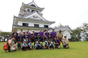 隊(スカウト7名、指導者3名、保護者9名)を中心に、BS3名とその保護者1名・VS1名、RS1名、他隊指