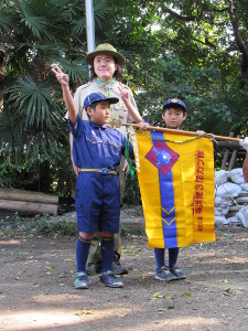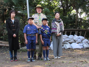 本部前広場において、カブ隊入隊式を行いました。 カブ隊としては昨年10月以来の入隊です。これにより、カブスカウトは9名となりました。