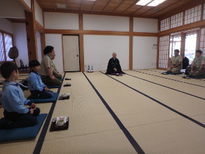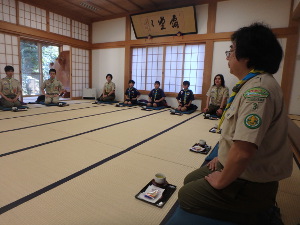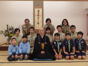 団委員長と各隊代表のスカウトと指導者、総勢13名が当団の育 成会長である乙川監院老師へ年頭挨拶に行きました。 団委員長および各隊代表者が今年の抱負を話しました。 また、總持寺境内を活動場所とさせて頂いていることをお礼し、 最後は全員で記念写真を撮りました。