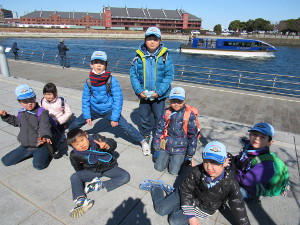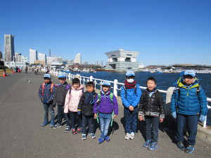電車でJR石川町まで行き、横浜中華街でブタまんを買って山下 公園で食べました。その後、大桟橋へ移動しスケッチ。さらに赤 レンガへ移動し昼食と工作船資料館を見学。そして最後にJR桜 木町まで歩きました。
