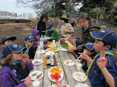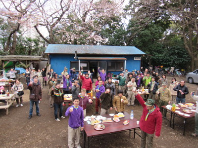 総会終了後、本部前広場において、3団関係者総勢82名が観桜