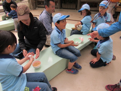 の後、小動物(モルモット他)と触れ合ったり、アスレチックを