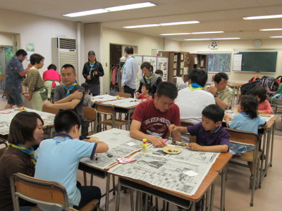 テーマを「親へのプレゼント」。スカウトたちは思い思いに木や