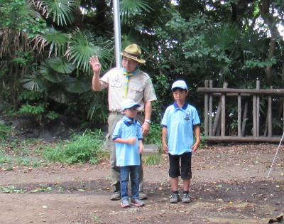 本部前広場において、ビーバー隊入隊式を行いました。 今回は2名が同時に入隊し、これによりビーバースカウトは8人 になりました。