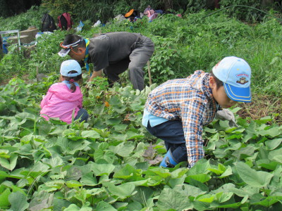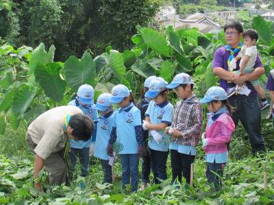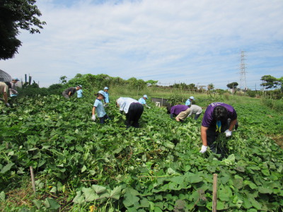 今年5月に芋苗を植えた畑(横浜健康ファーム)へ草取りに行き ました。 長雨と日照不足のせいか、雑草は少なく、約30分程度で草取り は終了。 最後に隊長が作ったフルーツポンチを食べて本部に戻りました。