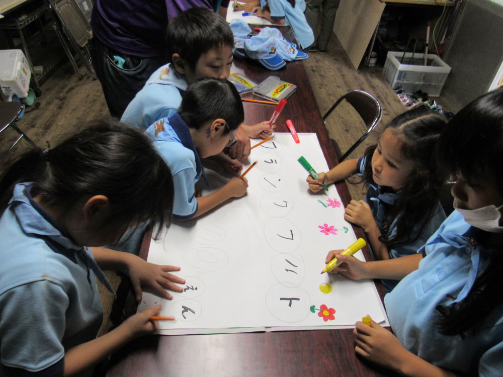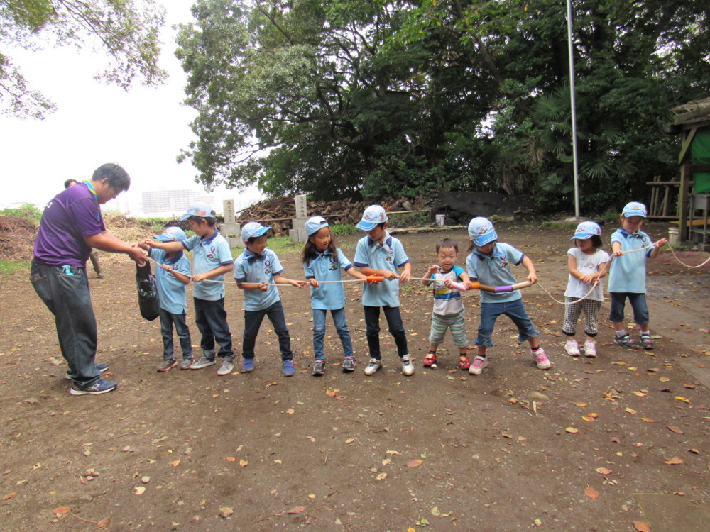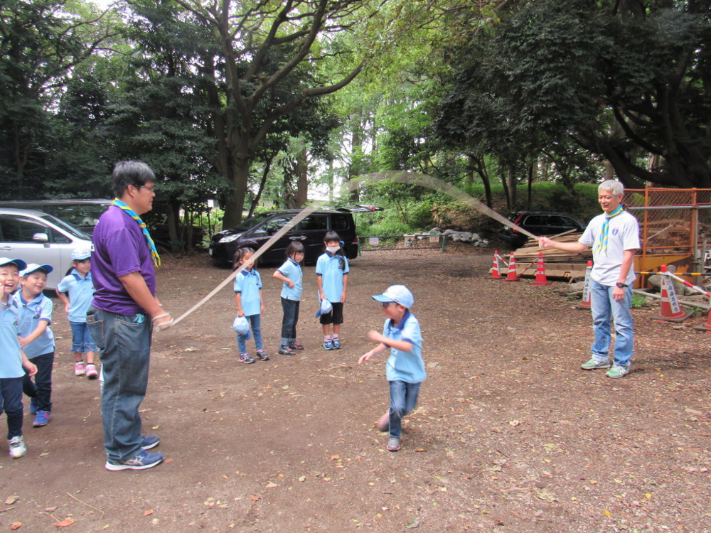 本部前広場にてロープを使って縄跳びとゲームをしました。 その後、10月8日(日)に予定している「3団秋まつり」の準 備として、ポスター(フランクフルト・デザート)を作りました