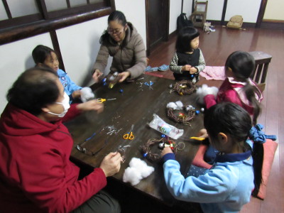 11月に実施した芋掘りの際に取っておいた蔓(つる)を使い、