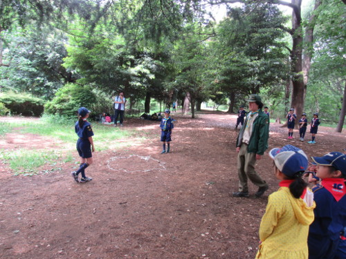 三ツ池公園にて鶴見区6個団による第3回鶴見区BVS・CSラリ ーに関係者約80名が集まりました。 今年も昨年同様、ビーバー隊とカブ隊とに別れ、「ベーコン」とい うゲームで競いました。(ビーバー隊と本文同じ)