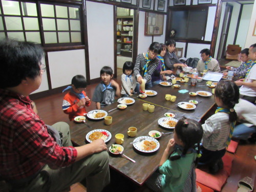 16日午後、5名のスカウトが本部に集合し、夕食作り・夜の探