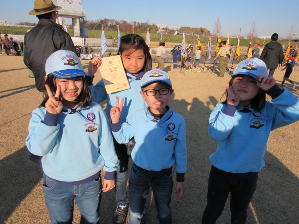 新横浜公園において横浜地区主催による新春凧揚げラリーが開 催され、横浜地区ボーイスカウト関係者約600名が集まりま した。 今回、ビーバースカウトは地区からカイト凧が配布され、凧揚 げをしました。そして、当団スカウトがビーバー部門「飛んだ で賞」で見事、1位になりました。