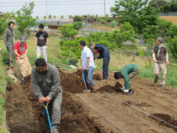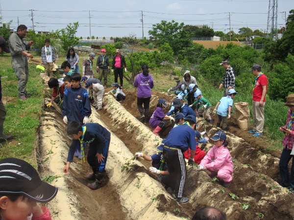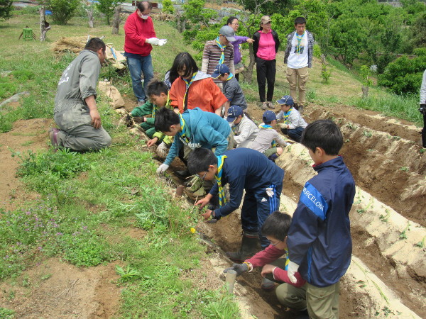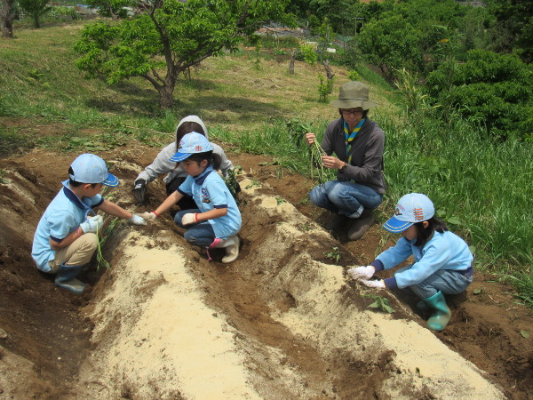 横浜健康ファーム(保土ヶ谷区峰沢町)にて芋の苗植えをしまし た。 今年も300株を準備し、ビーバースカウトからローバースカウ トまで愛情を込めて植えました。