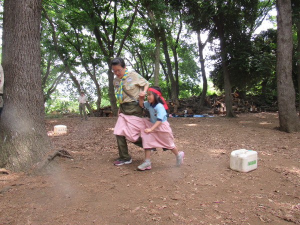二人一組(大人とスカウト)でデカパンをはいて走る