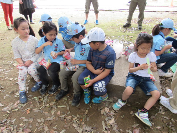 たが、みんな、楽しく境内を走り、お菓子をゲットしました。