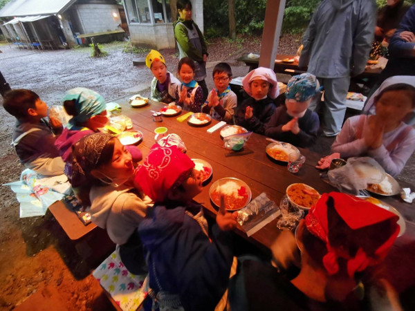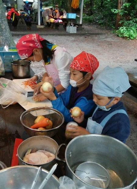 スカウトたちは優勝を目指して、カレーを作りました。