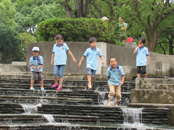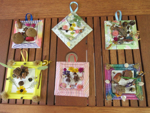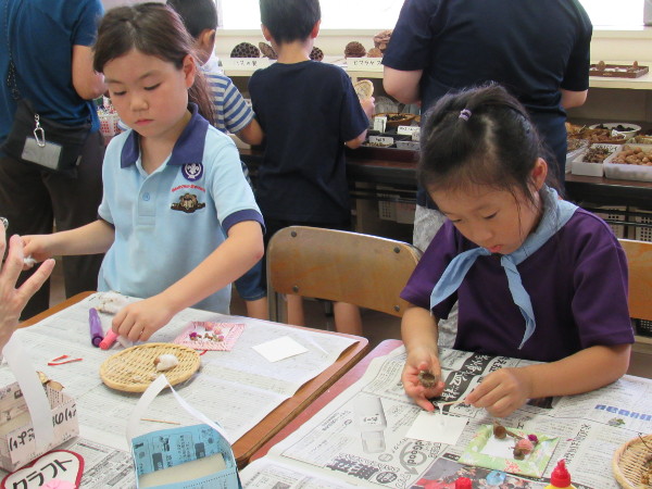 午後は公園内の涼しい部屋の中で松ぼっくりや木の実を使って工