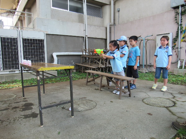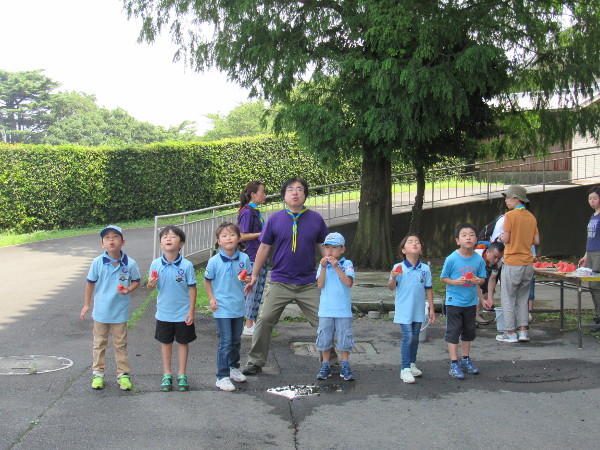 8月10日からの夏期キャンプに向け、總持寺大祖堂の裏にて、 キャンプ準備をしました。 まずはソングの練習。次にキャンプファイアにおける出し物(ス タンツ)の練習をしました。 その後、水鉄砲で遊び、最後はスイカ割りと種飛ばしの練習をし て、本日のキャンプ準備は終了しました。