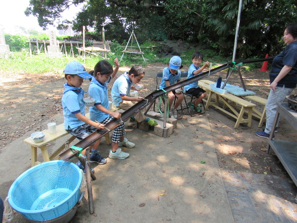 先週に続き、キャンプファイアにおける出し物(スタンツ)の 練習をしました。 その後は水風船を使った水遊びをし、最後は雨戸井を使っての 流しそうめんをみんなで楽しくお腹いっぱい食べました。