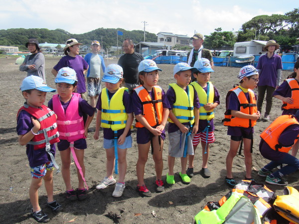 スカウトたちにとって適度な波の高さ。波が来る度に「キャーキ
