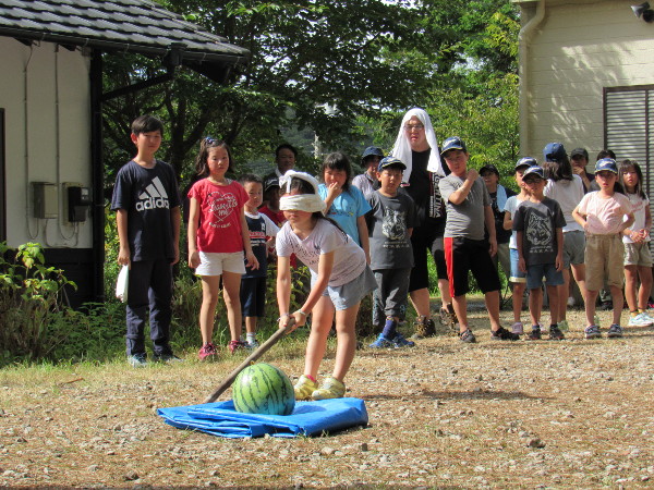 午後はスイカ割りと種飛ばし。残念ながらビーバーでスイカを割