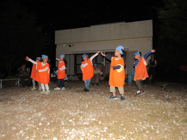 夜は大営火(キャンプファイア)です。ゲームやソングで盛り上