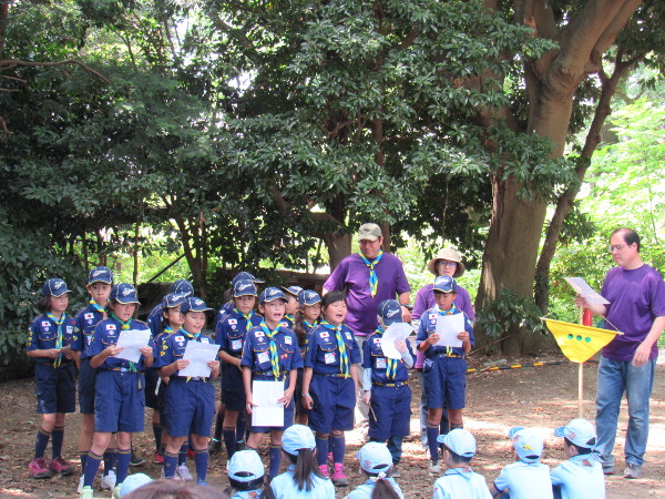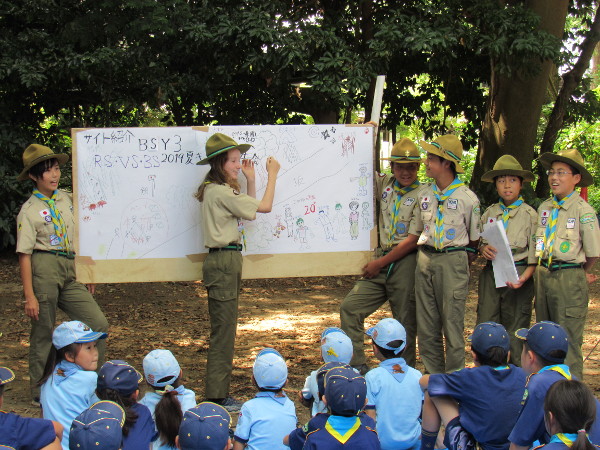ー隊は画用紙に、カブ隊は替え歌に、ボーイ隊は模造紙を使って