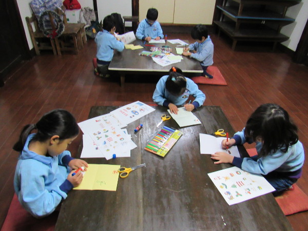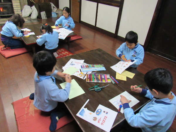 前回に続き、ソングとスタンツの練習をしました。 (今日は完成度80%?で終了。当日が楽しみです。) その後、プレゼントに添えるクリスマスカードを作りました。