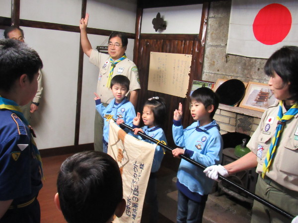 青黄館において、3名のビーバー隊入隊式を行いました。