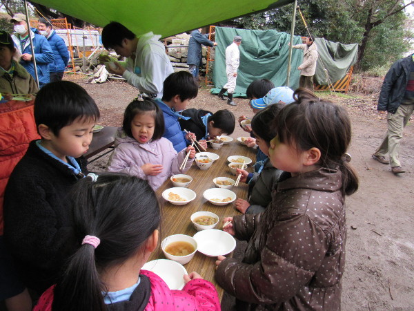 チャー隊が作った汁物をお腹いっぱい食べました。
