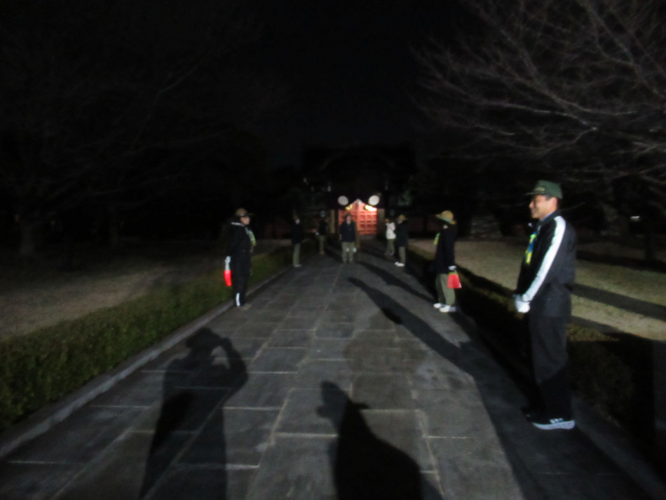12名が集合し、除夜の鐘を合図に警備を行いました。