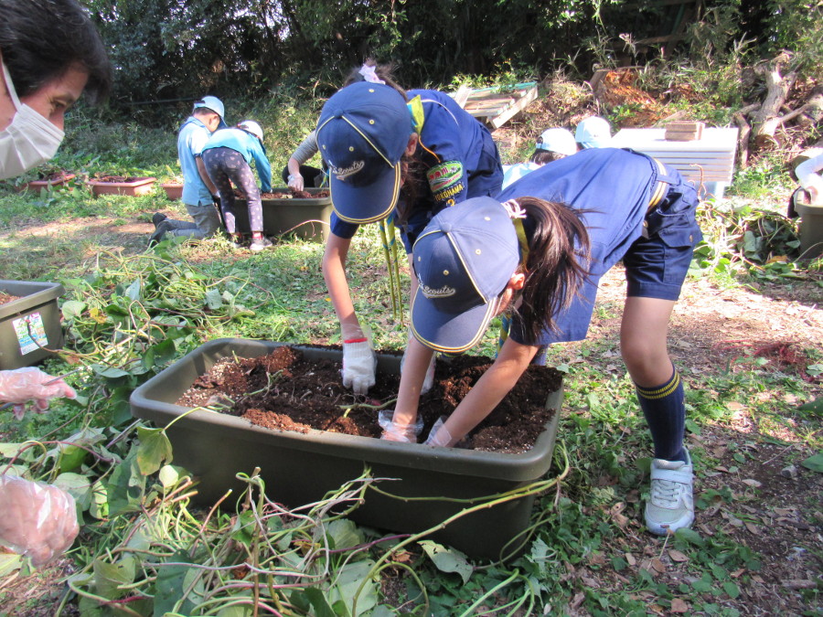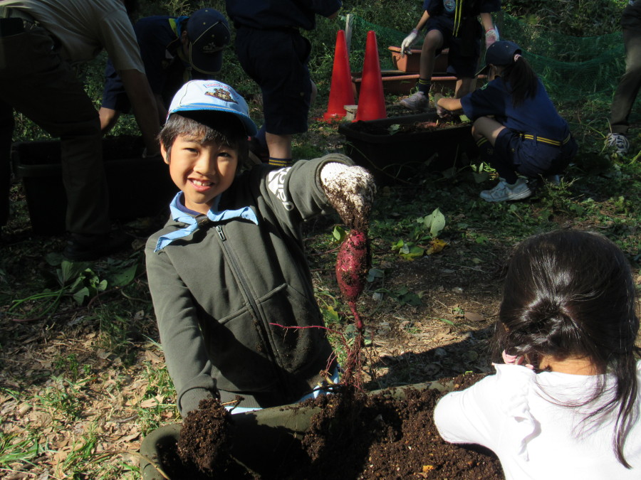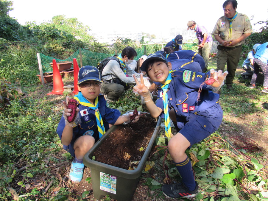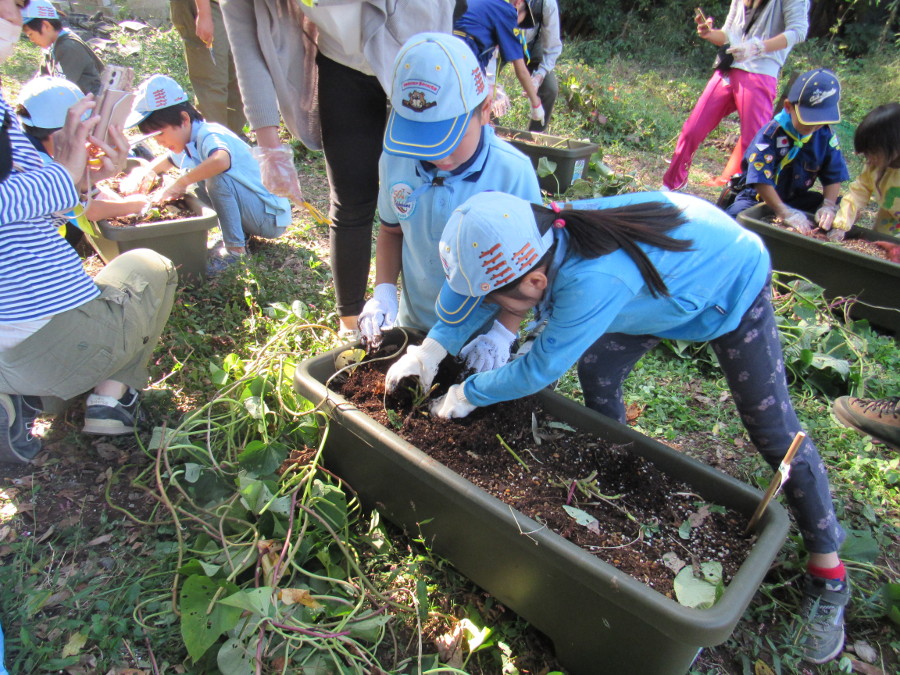 スカウト広場にて、ビーバー隊とカブ隊で芋掘りをしました。