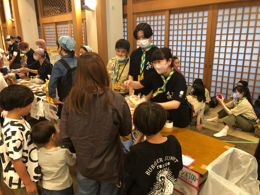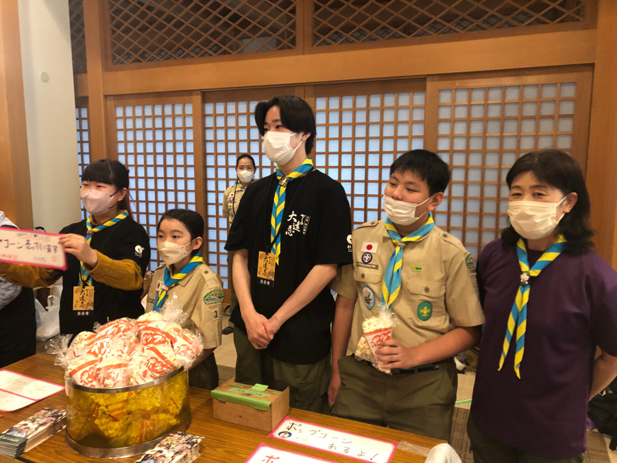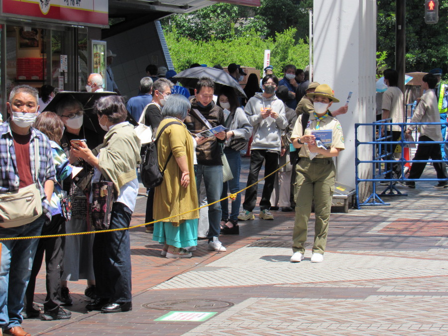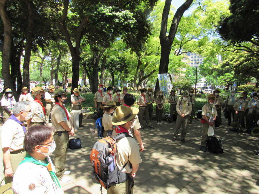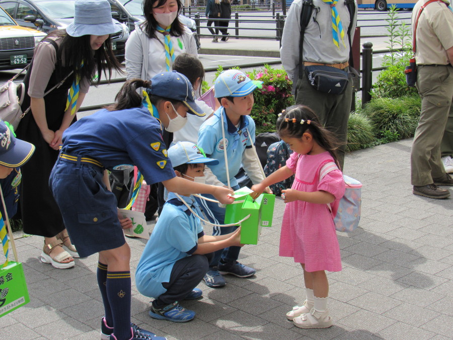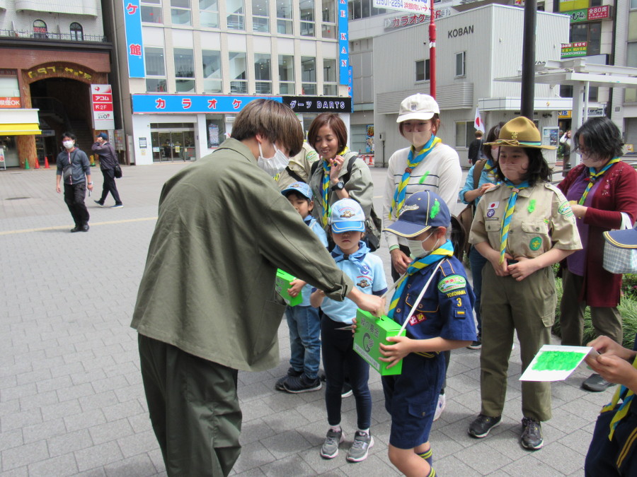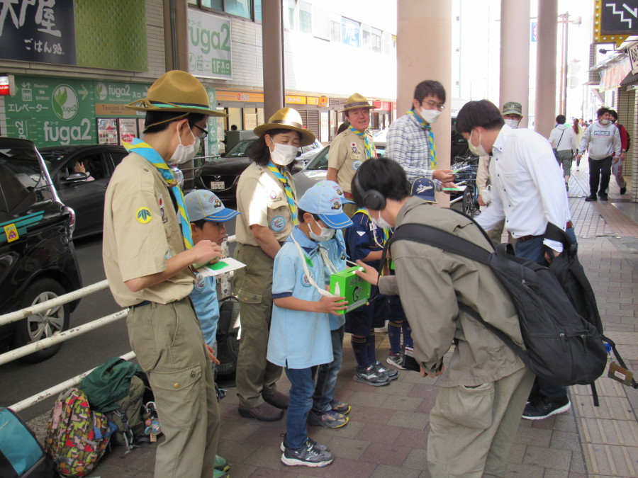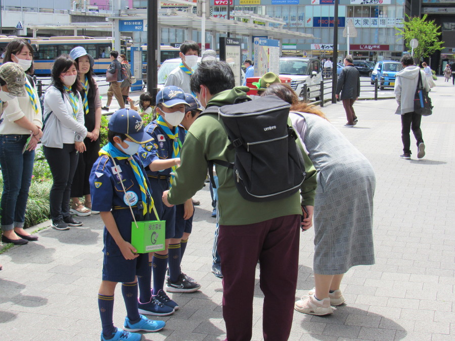 JR鶴見駅東口および西口において、スカウト19名、その家族