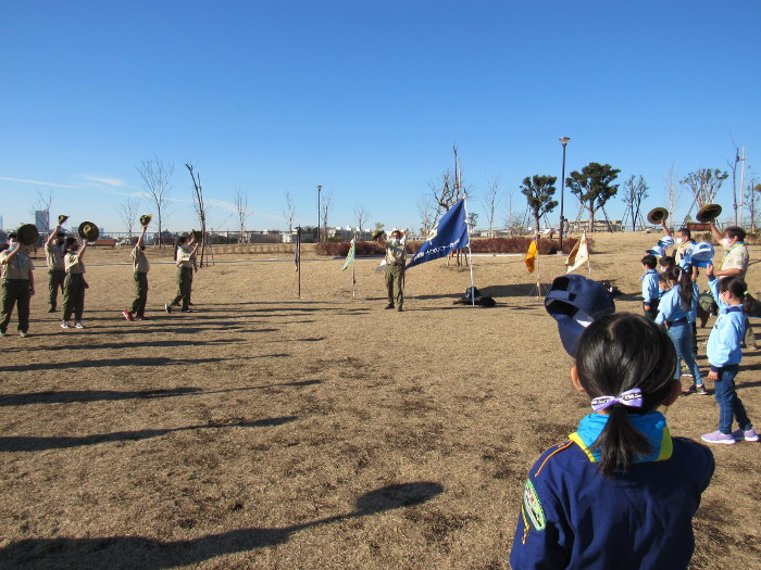 ビーバー隊からローバー隊まで今年の抱負を言いました。