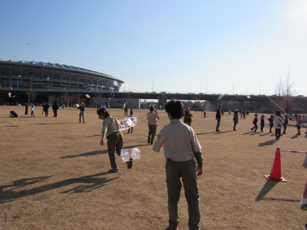 新横浜公園において横浜地区主催による新春凧揚げラリーが開