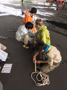 生憎の雨でしたが、当団スカウトは元気よく活動をしていました。