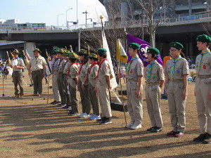 新横浜公園において、横浜地区開催のボーイスカウトラリーに参