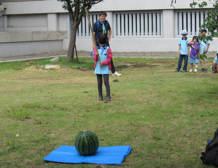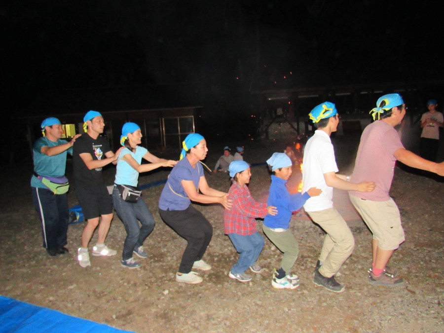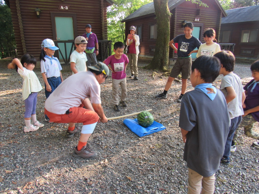 今回はキャンプファイヤの流れとスイカ割りおよび種飛ばしをし