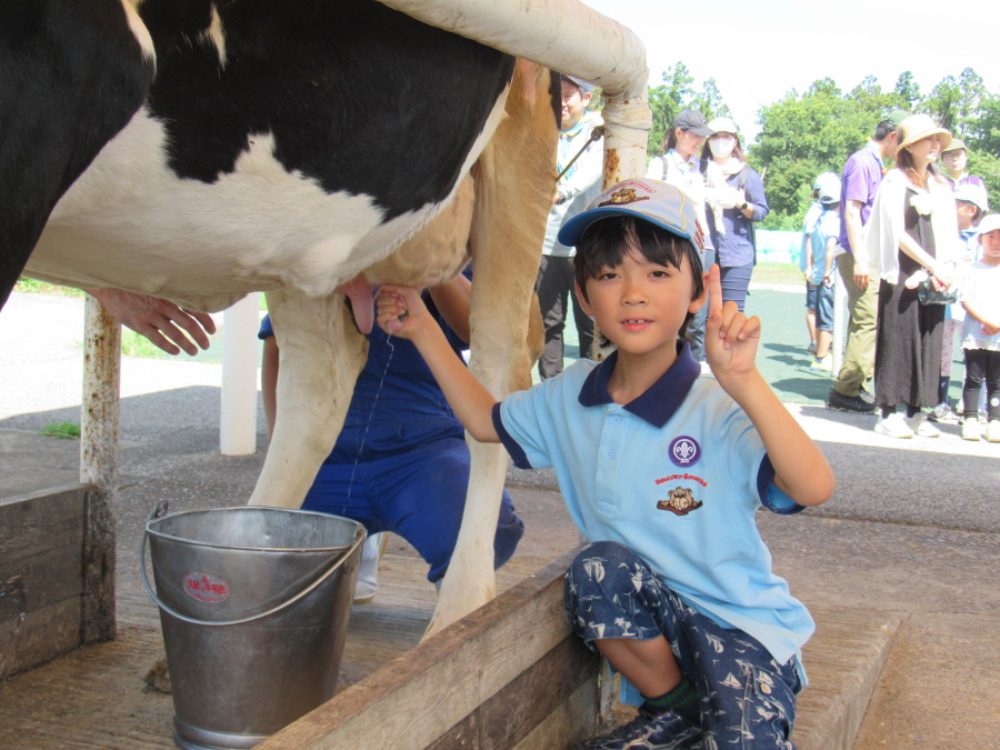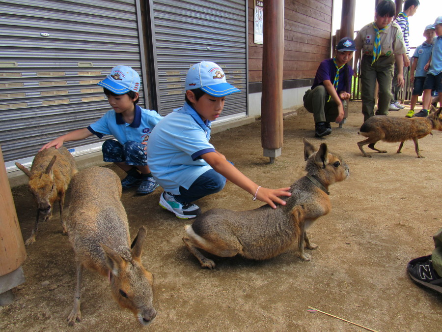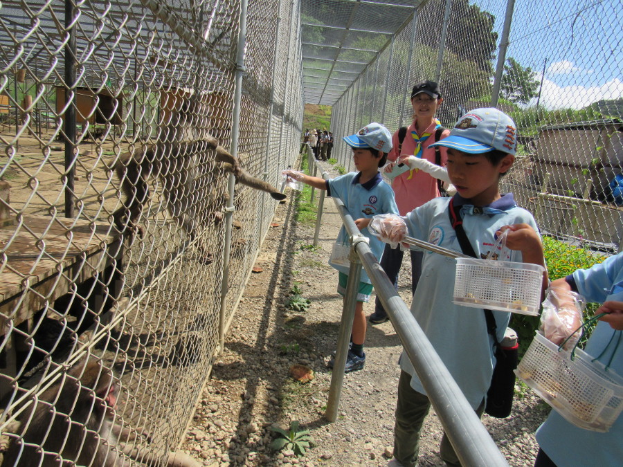 ボーイ隊と一緒にマザー牧場に行き、まずは入園前に記念写真。