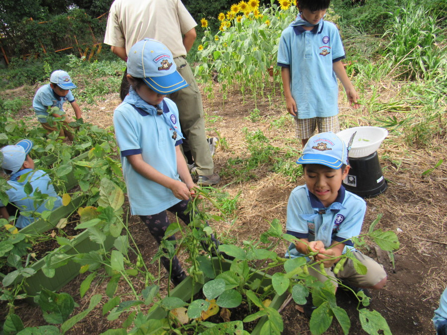 報告会終了後、6月に植えた枝豆を収穫しました。