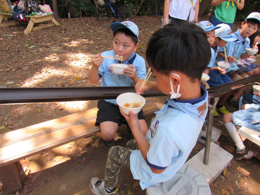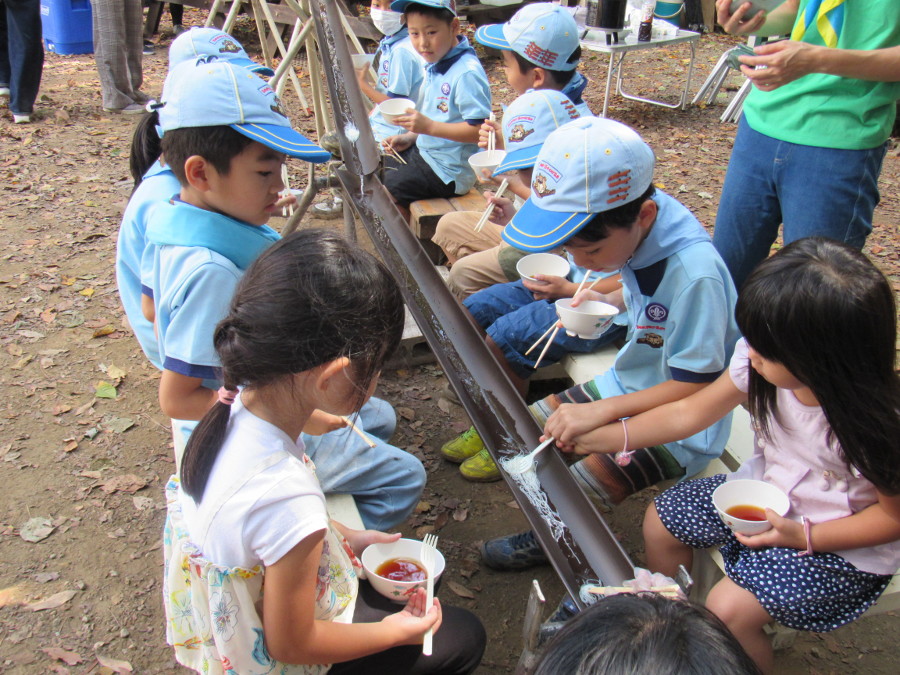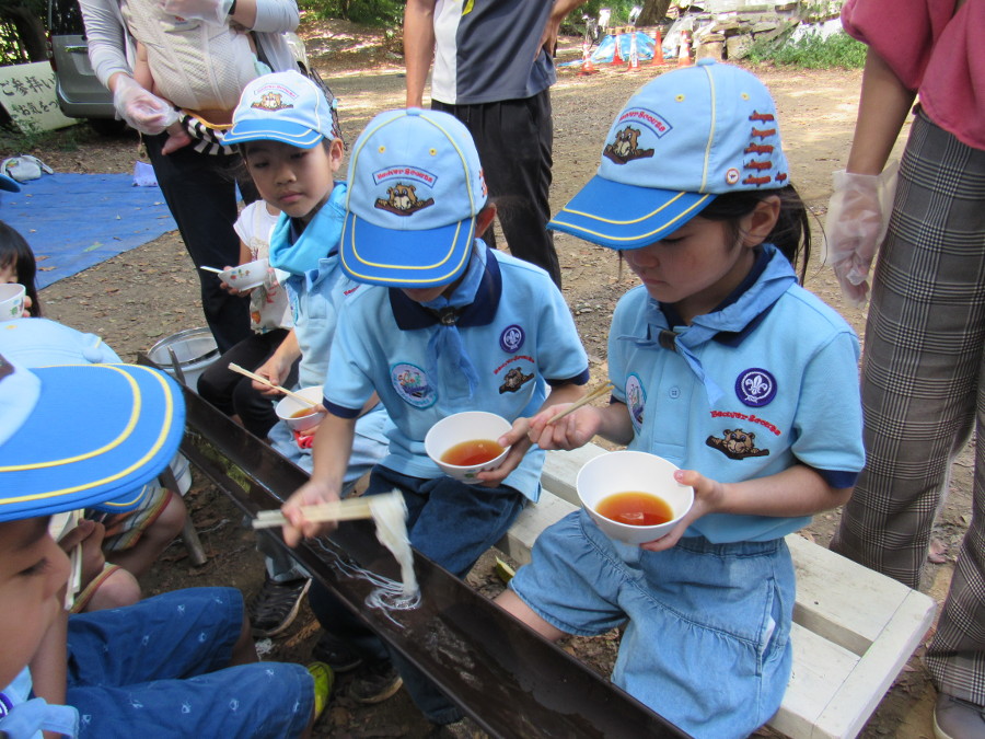 スカウト広場において、4年ぶりの流しそうめんをしました。